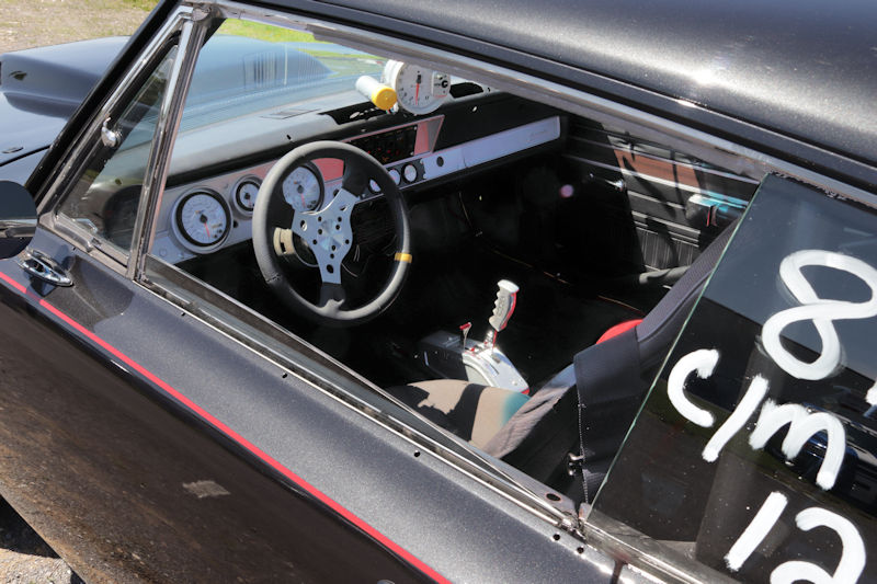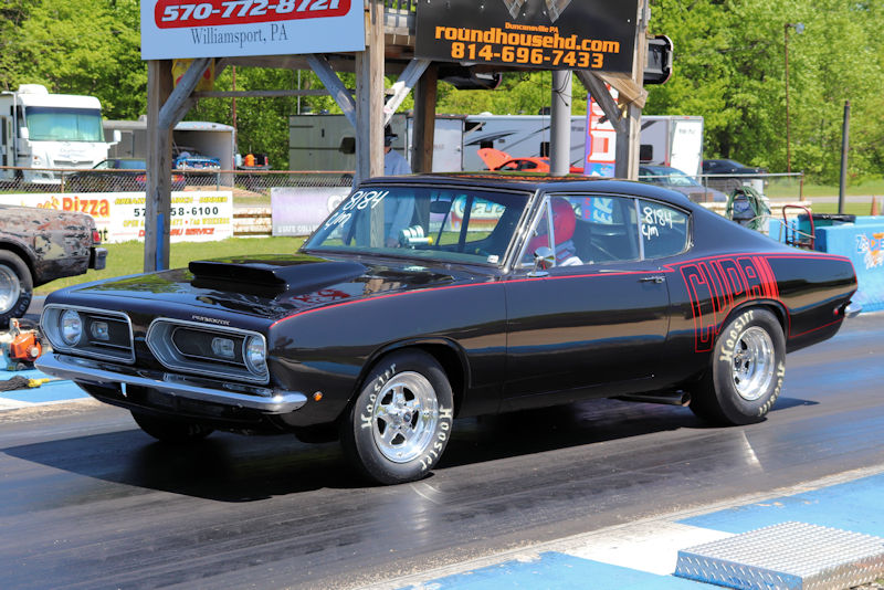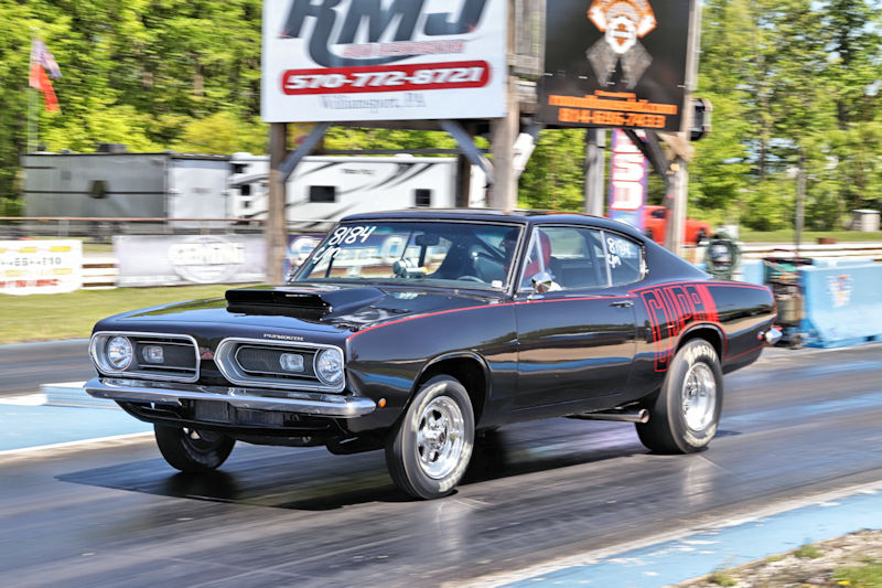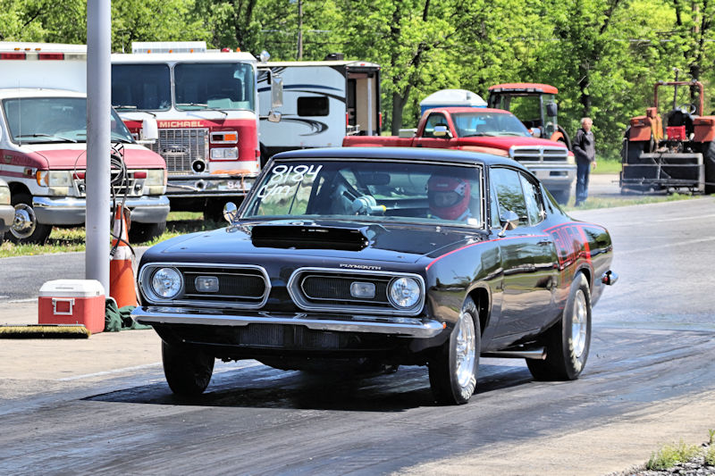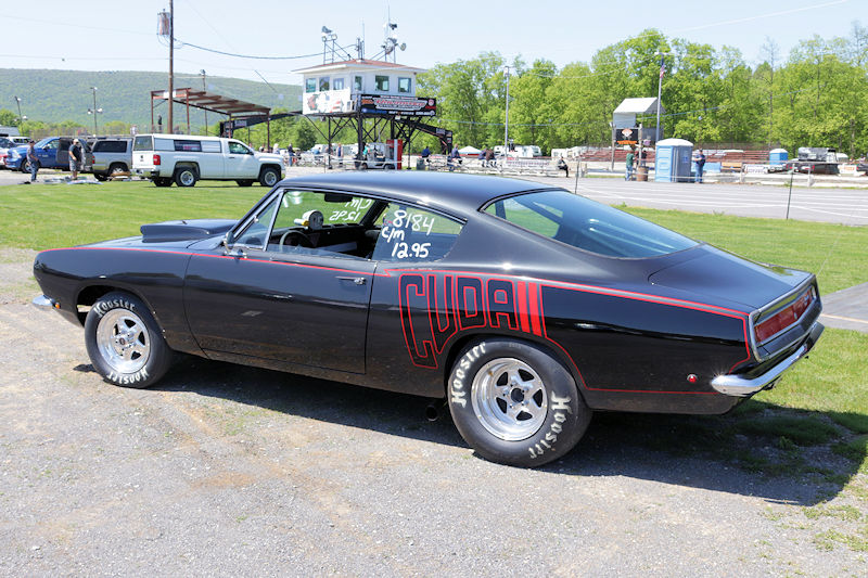 While the car sounds and appears extremely powerful, it is, in fact, powered by a normal 340 engine backed by a Torqueflite 904 automatic transmission and an 8 ¾ rear with 4.86 gears inside. According to Chaz, “It works good for what it is. Nothing radical has been done to the engine, it came out of a street car.” On this day, the car had recorded a best of a 12.95 E.T., a good time for what is basically a street engine. It’s also not a lightweight race car. Overall, it weighs just shy of 3000 lbs. Chaz has owned the car for about 11 years, but a good portion of that time, “it sat out in back of my garage. The only reason we bought it was for the brakes and the rear axle for my dad’s Duster. When it became time to throw it away, we decided to make a race car out of it and resurrected it.” The complete car that appears on the track today started out anything but that. Chaz added, “When I got it there was no front end on it. Just doors and quarters and you could see through the quarters.” Once assembled as a complete car, it made it to the track, pretty much flying under the radar because the patchwork of parts and bodywork left it nothing special to look at. That was about to change. Chaz painted the car over the winter, and he shared that it took “forever” to do the stripes, taking about 5 hours alone just to tape them off, instead of taking the easy way out and getting vinyl graphics. “I would’ve liked to have put more time into it, but I was running out of time.” As for what it’s like on the track, “It’s a fun toy. It puts a smile on my face. Nobody really looked at it last year when it was yellow and beat down (before it was painted). Keep an eye out for this Barracuda when you’re at the track. It’s a good example of what a “resurrected” car can look like with hard work and elbow grease.