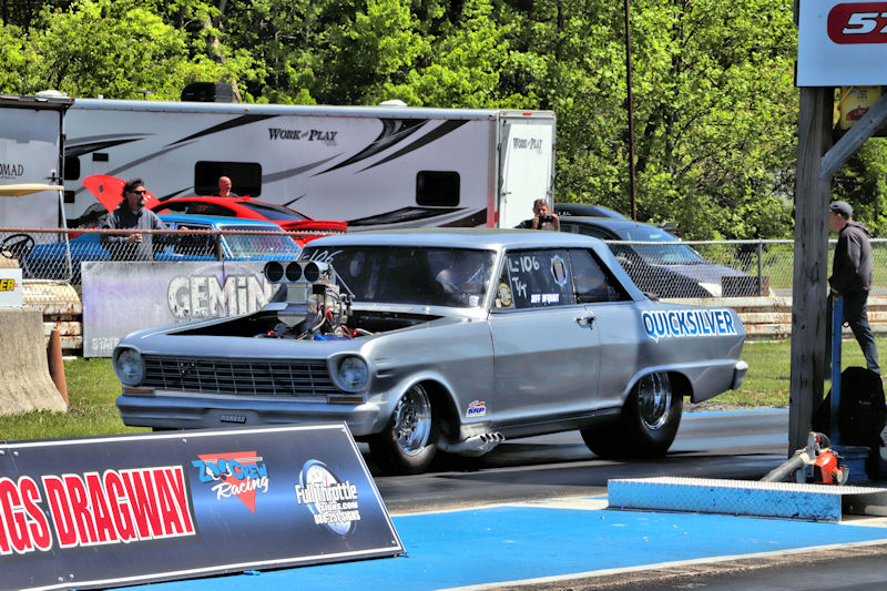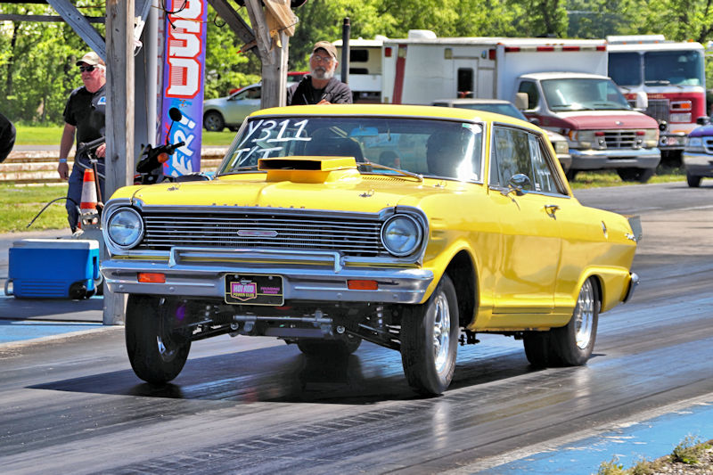 Back in the heyday of hot rodding, Charlie McQuait caught the bug on the local streets and progressed to building race cars and racing. That “bug” passed on to son Jeff, who in turn, passed it on to son, Casey. These days, either Jeff, or Casey, or both of them together, can often be found at a local drag strip in their distinctive 1965 Chevy IIs (although Jeff gets out with his ‘55 Chevy gasser sometimes, too), Casey’s decked out in a bright yellow and Jeff’s dressed in a“Quick” silver. Jeff’s car is powered by a 505 cu.in., alcohol-injected Chevy engine with a tunnel ram intake and two four-barrel carburetors, while Casey’s is powered by a 355 cu. in. Chevy small block. If you get a chance to catch either (or both) of these guys at the track, take a close look at these cars and not only admire the workmanship of the hot rods, but admire the special bond of blood relative and racing family they represent.