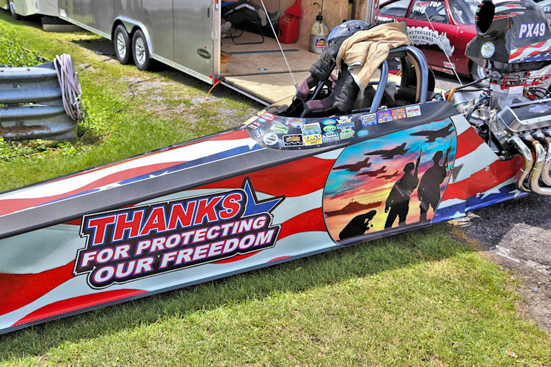 Beaver Springs Dragway – Memorial Day, originally known as Decoration Day (I didn’t know that one, did you?), is a holiday established in our country for the purpose of honoring and mourning the U.S. military personnel who died while serving in the United States Armed Forces. It was fitting on Memorial Day weekend at Beaver Springs Dragway to see a car paying tribute to our service personnel. Although he, himself, didn’t serve in the military, Brian Pecht of Lewistown, PA really appreciates what the military has done for us all, and displays it on the side of his car. He’s quick to add, “It wouldn’t be a free country without them.”
