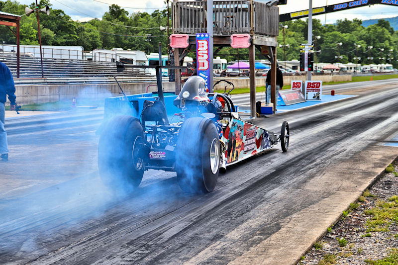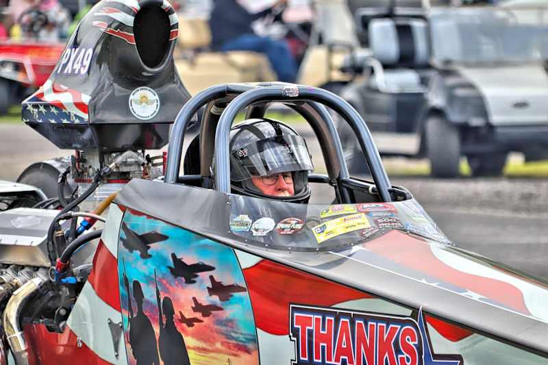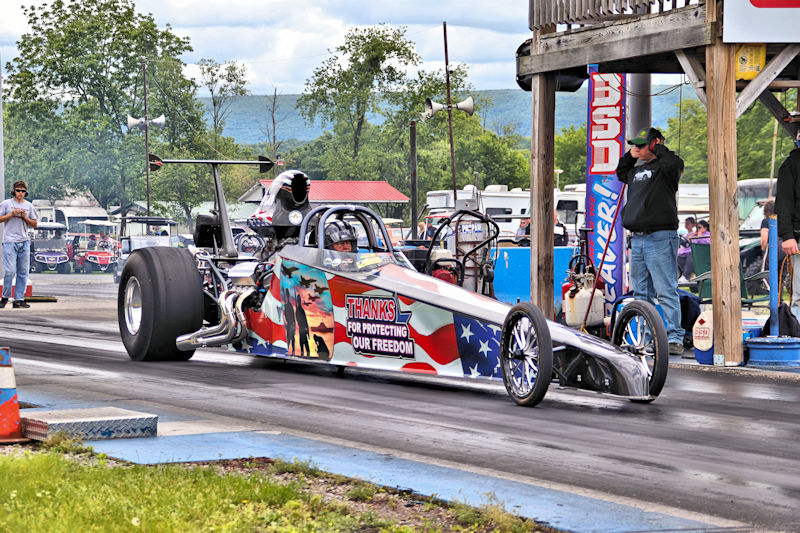 Brian’s been running the car, which is a 2011 Miller dragster, for about 10 years now and says that it’s been really fun to drive. Power comes from a 598 cu.in. Big Block built by Wilson in Delaware. Brian has seen a best e.t. of 4.70 in the eighth mile and 7.40s in the quarter mile. Top speed is in the neighborhood of 180 mph in the quarter. The Pecht’s call Beaver Springs Dragway their home track, but they also like like to travel to other tracks for money races. While watching them, it’s obvious Brian and his wife make a good team when campaigning this car. That makes perfect sense when you learn they actually met each other at the drag strip and they both raced. It’s not only a great husband/wife combination, their grandson also likes to race with them, driving their old car. This kind of family racing is a perfect way to celebrate the freedom we have in this country.