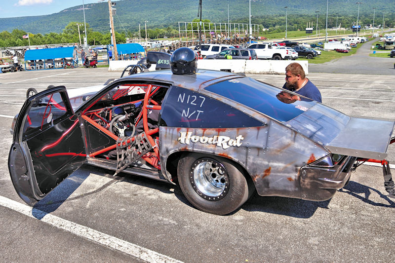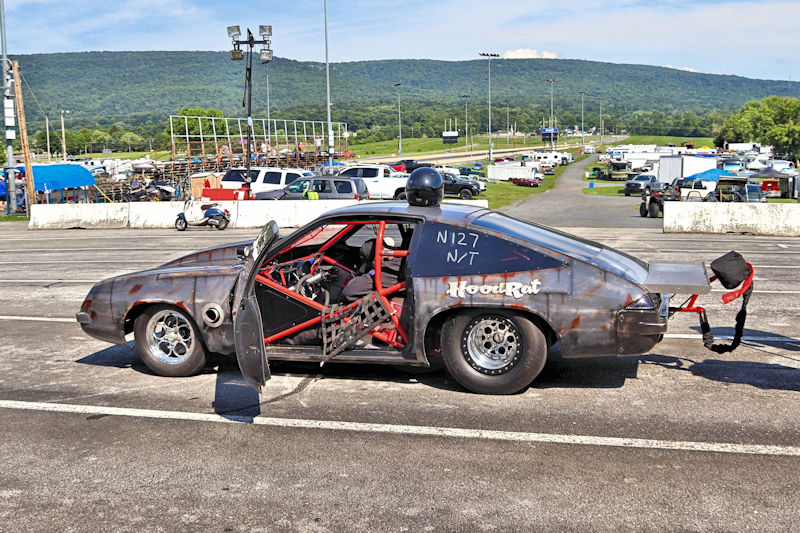 Mason Dixon Dragway – Some cars just have a quality about them that is captivating. One such car is the “Hood Rat” Monza of the Stone family of Roger, Justin, Nathan, and Carmen. They came into possession of the Monza by trading an altered drag car for it. It came equipped with ladder bars, big tires, and overall features that were like that of a 1980s race car build. The family campaigned it like that for about a year before deciding it was time for an upgrade and they proceeded to tear it all apart. The roll cage was cut out of it and redone from the firewall back with all of the cage work being done by JDR Motorsports in Winchester. The older ladder bar suspension was changed to a 4-link rear suspension. Under the hood is a small block Chevy engine aided by two 500 systems, but Justin Stone added, “we’re not spraying it.”