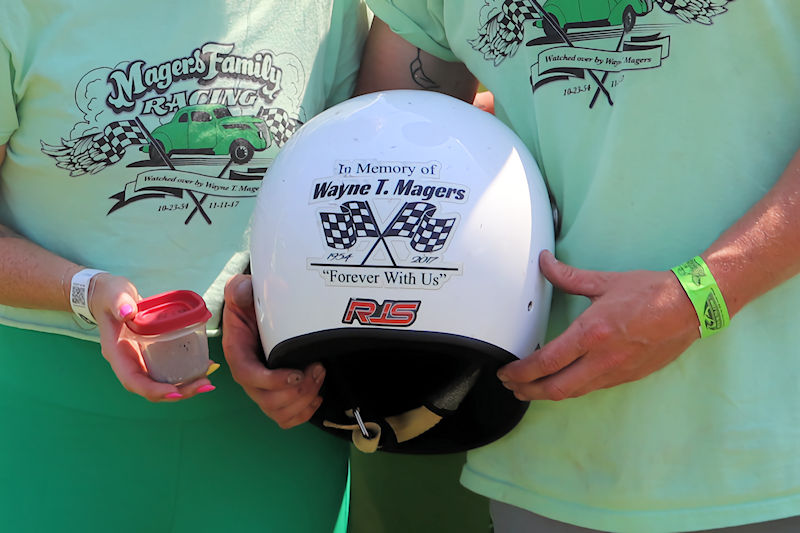 Nikki shared how they were trying to discreetly spread some of their father’s ashes on the starting line at Englishtown when the sweat and humidity caused the ashes to stick to her hands and she frantically tried to wipe them off on the slicks before the officials caught on. They laugh about that memory and it’s something Dad would’ve gotten a big laugh out of, too. Besides the ashes spread at the track, both Tommy and Nikki have their own urns with Wayne’s ashes in to remember him by. But there’s also more. Another container of ashes travels with the car, staying in Tommy’s helmet until it’s time to race. Every racing event, every pass down the track, part of Wayne Magers makes the trip. But more importantly, every time they’re at the track, Wayne Magers is still alive in the hearts and souls of his kids. It’s just one of those situations in which a car is way more than just a car. And a small tupperware container is way more than just a tupperware container. It’s also a reminder that a drag race can be much, much more meaningful than just driving a car down a track. It’s a genuine slice of life. And it’s a life that surpasses the meaning of who shows up first at the finish line by the proverbial country mile. Nikki told me their father would always tell them to “Be Good” and that slogan is tattooed on both their arms in memory of him. Dad would be proud they’re both carrying through with that.