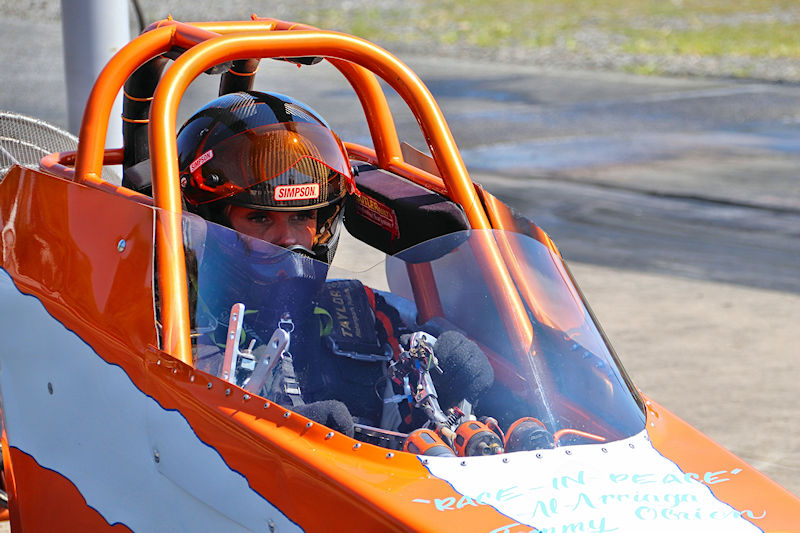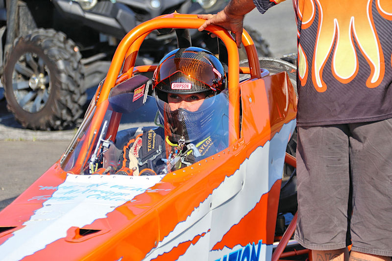 I observed that it was probably a good thing not to get used to the car and getting too comfortable and complacent with it, and Dawn explained a bit further what driving it was like. “It’s definitely not like, okay, you go on and get in your car every day and drive in to work and go, ‘okay I can drive this thing.’ Sometimes I get in there and go ‘today I don’t know if I want to go down the track or not’ but I still do. The bad thing with this is it’s 5Gs going down the track and negative 7Gs when I pull the chute. It’s all fun until you hit the finish line, but then at the finish line you know you’re going to get hit with the chutes. When these chutes hit, they hit hard, it hurts, your eyes feel like they’re going to pop out of your head, you get an instant headache, I feel like I’m 100 years old getting out, my back’s all humped over, so it’s fun until the finish line.”
