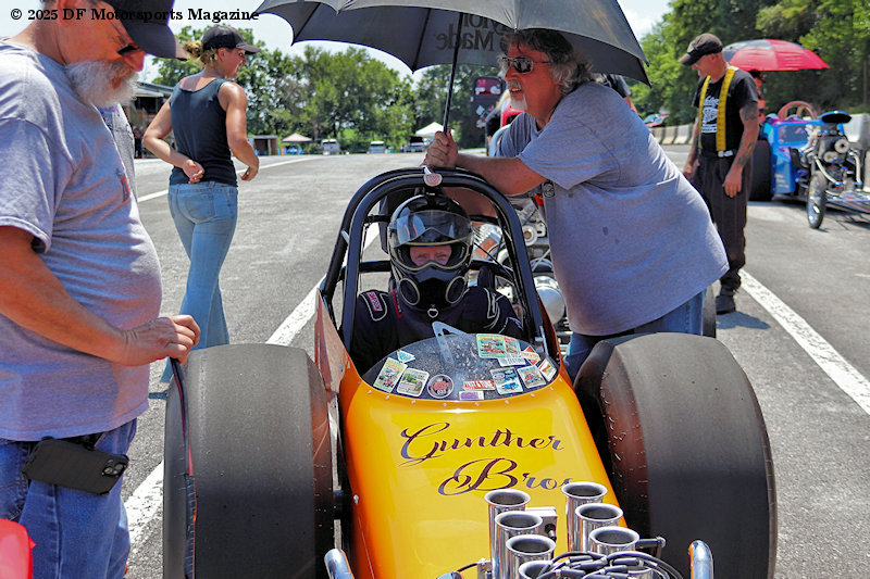 Operating a nitro-breathing dragster is no small task, even with a small-block engine. Jeff Gunther was quick to give credit to those who help make their race days and shows possible. “Ronnie Smith is the crew chief. Believe it or not I got like four or five other crew members that help out tremendously. This car needs a lot of attention and a lot of people to help with the car, the car doesn’t have a battery so we need someone to hook up the battery, we need someone to prime the engine, so it takes a lot of people. I got a real good crew. I couldn’t do it by myself, there’s a whole lot to it.”
