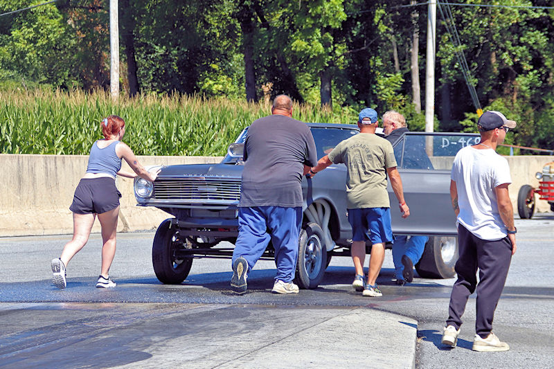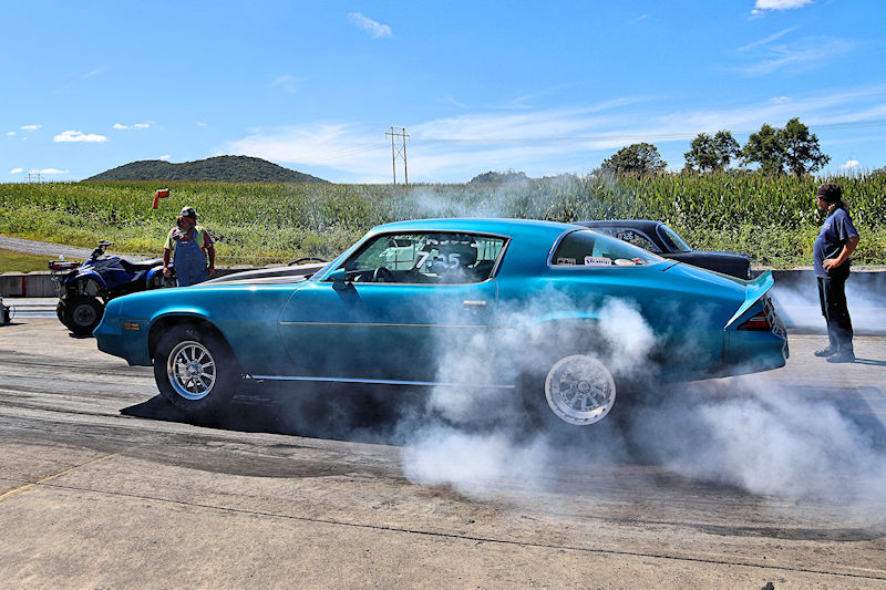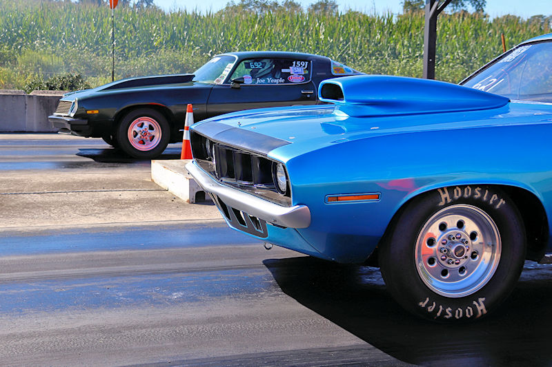 It was getting late into the afternoon. I needed a break and sat down in a chair conveniently in the shade of the timing tower next to track owner, “Mountain Mike” Natoli. “How do you like our little slice of Heaven?” he asked me. I don’t remember my answer, but it was all good. I really do like the place and the people there. What I didn’t tell him was what I had been thinking a little earlier on the starting line. If you’ve never been to South Mountain Raceway before, you should know off to the right of the starting line is a well-tended corn field, the corn stalks all tall and a perfect shade of green. As I watched a few very stout Camaros and Barracudas coming up to the line, I started having “Field of Dreams” flashbacks. I was almost expecting the ghosts of Bill Jenkins and Ronnie Sox to come walking out of the cornfield whispering, “If you build it, they will come.” Mike Natoli didn’t build the track, but he did step in and bring it back to life, much like Dr. Frankenstein brought his monster back to life. He shared a few of the challenges he faced in doing so, and I have to say, he’s done a good job of making it all happen for the enjoyment of everyone in attendance.
