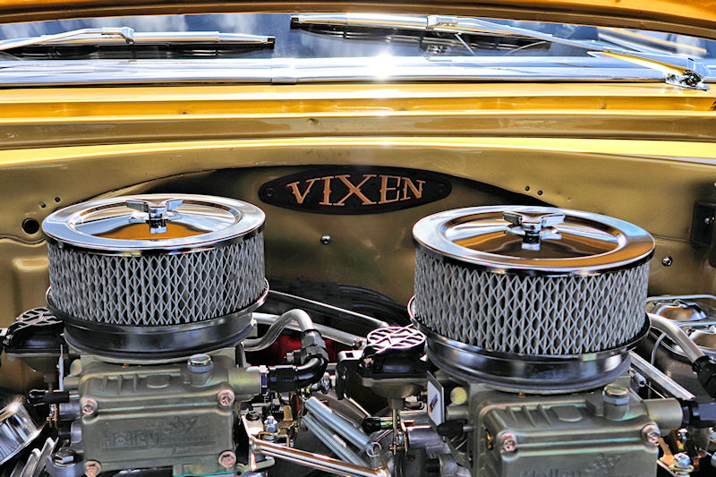 Under the hood, the word “Vixen” is on the firewall, seemingly standing guard over the engine. I wondered what that was all about, and Duncan, probably sensing that curiosity, explained, “The car’s named Vixen. I was at home one Saturday morning, and I was laying under the car block sanding the quarter panel, and I thought to myself, ‘I’ve got my hands on this car more than I do my wife’ so that morning, I said to my dad, ‘okay, her name’s Vixen, this is our girlfriend here.’ He owned the car for about a day and we cut the quarter panel in half took a body saw to it.” It’s impossible not to be more amazed by this car the more you look at it. It’s obvious Johnny Duncan and his father have, indeed, spent a lot of time and love on this “Vixen.”