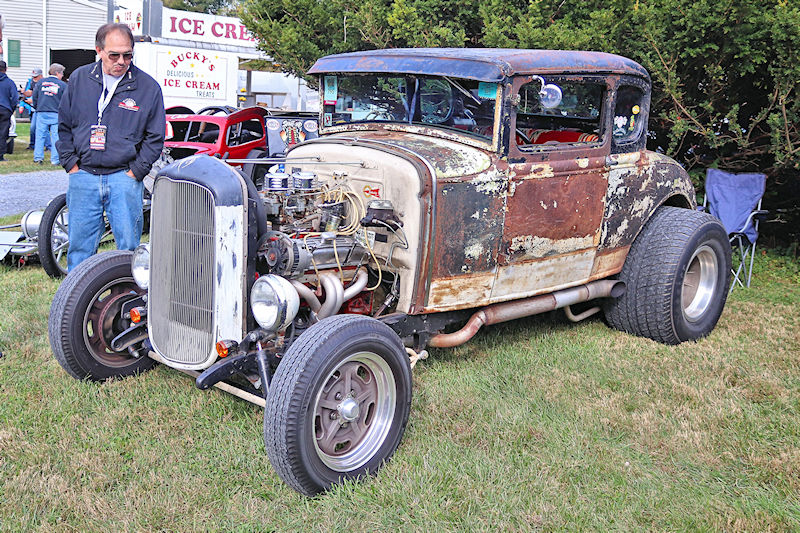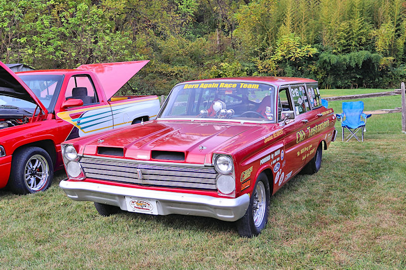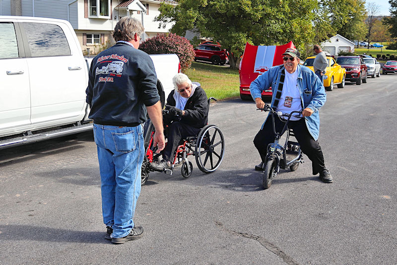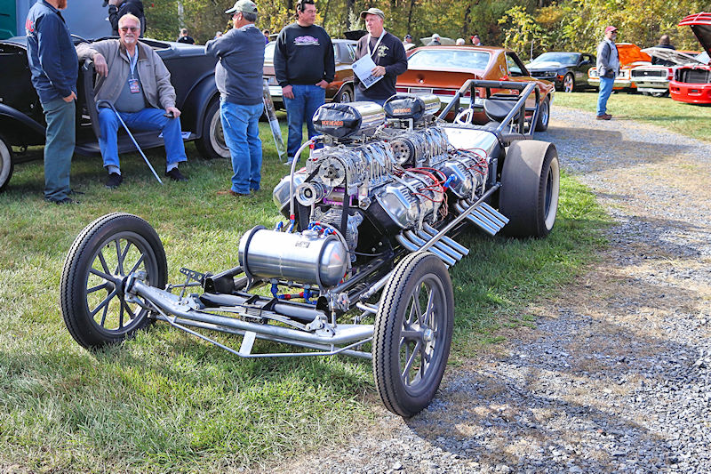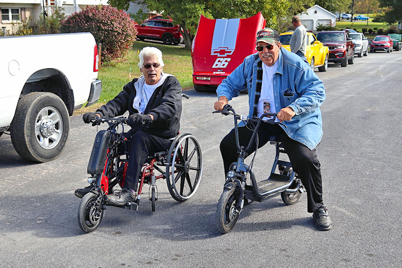 One guy commented to me he was used to waiting for people to move to take a good picture, but kids running around were the worst. I had to remind him while there were few little ones present, there were a lot of “big kids” running around. The cars here are definitely a fountain of youth, as there were many youthful “big kids” enjoying everything like they were young again. There were two guys who took it to another level. Jim Kramer, current owner of Bud Faubel’s famed Hemi Honker, and a noteworthy Mopar guy and Keith Strayer, who proudly states he drives a ‘73 Chevy Leguna 2-door sport coupe, staged a match race on the public (don’t tell any law enforcement officials about this) road by the barn. With Terry Bobb acting as flagman, the pair squared off in a race between Keith’s electric wheelchair and Jim’s electric scooter. Even though Keith pulled quite a holeshot, it was easy to see, his was the quickest ride.