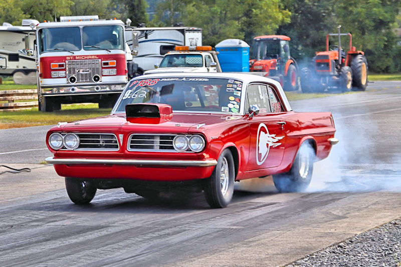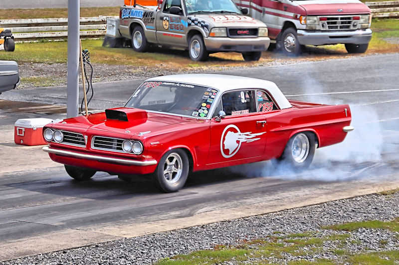 The car Randy races is a sweet-looking 1963 Pontiac Lemans. After seeing some impressive passes, I asked him what it used for power. His answer caught me by surprise. “[I] Got the small motor in it right now, it’s around 740 cu.in.” 740 cubes. Small. Of course, I had to ask about the other “non-small” engine. “880 is the big one, got it out freshening it up.” After that, he elaborated on the “small” engine. [It’s a] 1967 Pontiac 400 stock block. Bored 0.30 over 4.5 inch stroke, set of Kauffman 380cfm round-port heads. [It’s a] Good package, Powerglide trans, 3.90 gear nothing real sophisticated. It works well.”