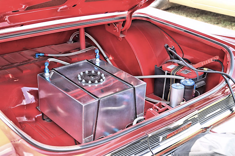 It snowballed. When I first bought the car, we was just going to do some drive train, and that was it. The next thing you know, I was out at Travis’ house, he’d ended up cutting out the wheel tubs. I’d go out every other day just to help see what I could do. I walked in one day and he had my quarter panels cut off. We stretched these quarter panels, cut it down, took out 2 inches. I walk in, he’s just sitting there, and I ask ‘what are you doin?’ he says, ‘we need to put this big tire in there. You do body work, don’t ya?’ So I had to stitch it all back together.” And an excellent job of stitching he did. The car looks completely unmodified to the untrained eye.
