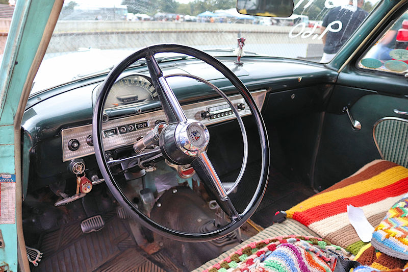 Ben got the car about six years ago, in completely stock condition, right down to the original 239 cubic inch V8 (rated at 130 hp in its’ day) and automatic transmission. Of course, that old 239 is long gone. In it’s place you can now find a 390 cubic inch engine (built by Ben’s brother using a ‘64 Police Interceptor block) backed by a 4-speed transmission and a 9-inch Ford rear.
