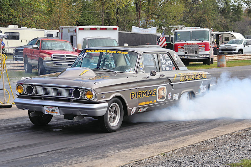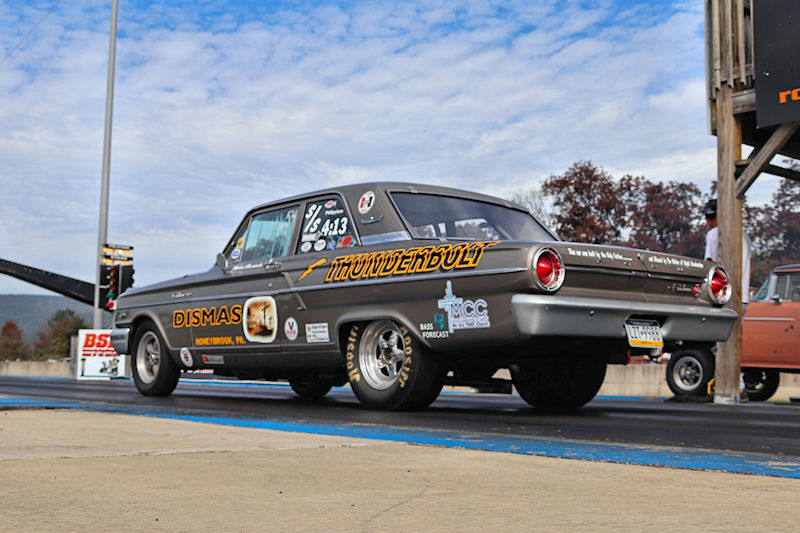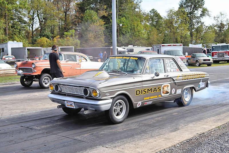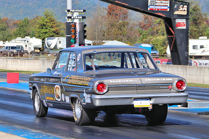 This brings us to the ‘64 Fairlane of Michael Breidenbach. Breidenbach shared the story of his car. “Jimmy actually found that for me in Detroit. Me and Kevin, my wife and his wife, we rode up there one morning and one night, we drove straight up and bought the car. I didn’t know anything about the 64 Fairlane or the Thunderbolt or any of the history behind it. I put a lot into it, I put a lot of love into it. It’s got a 347 stroker with a C4 Transmission, a Ford 9-inch 4:11 rear end. [It] runs 10.11s. The name of the car is Dismas. Dismas was the individual who was crucified on the right hand side of Jesus and he asked Jesus for forgiveness and accepted Jesus as his Lord and Savior, asked to remember him and Jesus said ‘you’ll be in paradise with me.’ That’s where I got the name Dismas. The program I went through years ago, after I got out of prison, I was in prison for 10 years, I got out of prison I went to a place called Dismas House, in Vermont and the name just stuck with me ever since. I just named the car after that because it’s such a conversation piece. I just love talking about it, I love spreading the message. I love the car. I love the history. I love the attention it gets. I love being a part of this drag racing family, this church family, this Christian family. It’s amazing.”