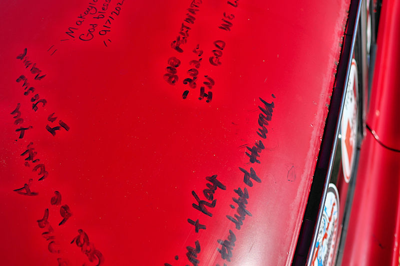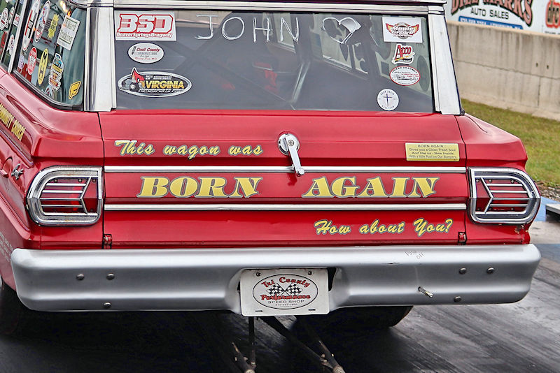 It’s been years ago, but I still remember my first encounter with James Joyce. I was always one to admire hot rod station wagons, but his was different. His wagon displayed a message. On the back of the car, in big, bold lettering was the question, “This Wagon’s Been Born Again. How About You?” James saw me reading that and asked, “Did you answer that question yes?” When I replied that I did, he replied, “Then sign my roof.” And I did. And it’s been long enough ago that original signature wore off and I signed it a second time years later. This was my introduction to the Born Again Race team started by James Joyce and Kevin Smith back in 2017. On this day I was able to catch up to Michael Breidenbach and James Joyce (Kevin Smith showed up later) and ask some questions about the team and the cars.