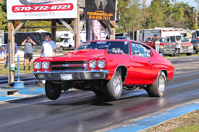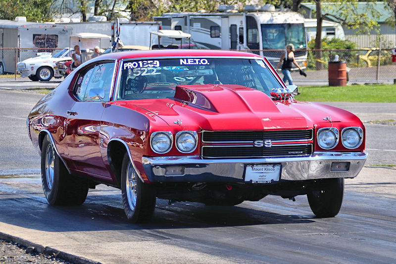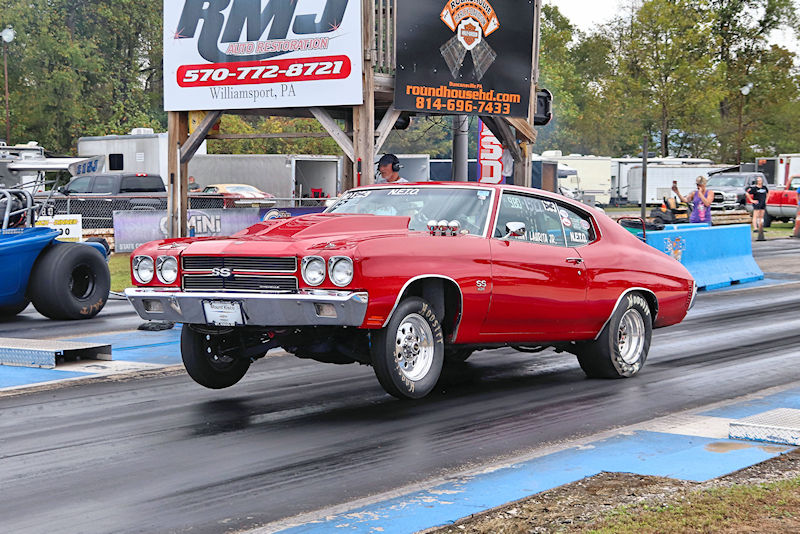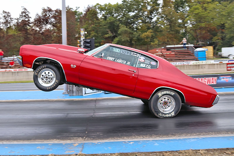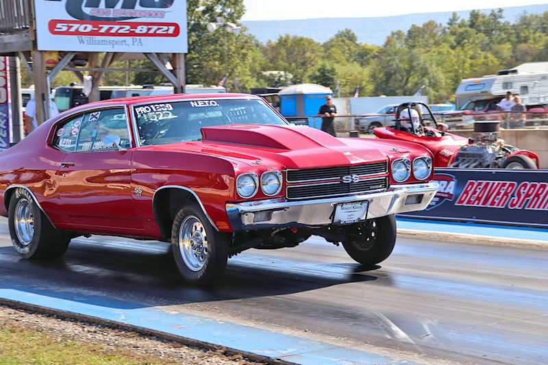 Beaver Springs Dragway – Having owned a Chevelle or two myself, my senses perked up a bit when a gorgeous example of a ‘70 Chevelle pulled into the staging lanes. And then when it left the line, the tires hooked and the car stood up like a hungry dog begging for a bone, I just had to find out more. And there was a story to be told. When I tracked down the driver, Vinny Laurita, Sr. in the pits, he told me all about it. “This is my son, Vinny Jr’s’ car. I’ve Been racing quite a few years, got my son into racing years ago. This Chevelle is actually my son’s car. My son won the NHRA 10.0 index championship with this car in 2014. My car is broken, so we decided to come out and represent the club, NETO (North East Timing Organization), this weekend, expecting a little better air, I kind of brought a water pistol to a gun fight, but we threw every trick we had at it. Driving this car is kind of like riding on an amusement park ride, so regardless win or lose, I had a great time wheeling it. I want to thank Mike McCracken for being probably the best host of a race track of any of the tracks we race at. We greatly appreciate him.”
