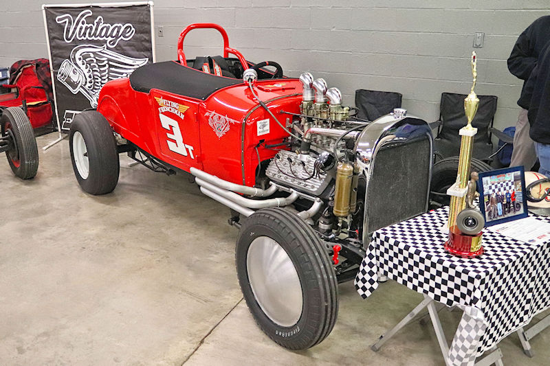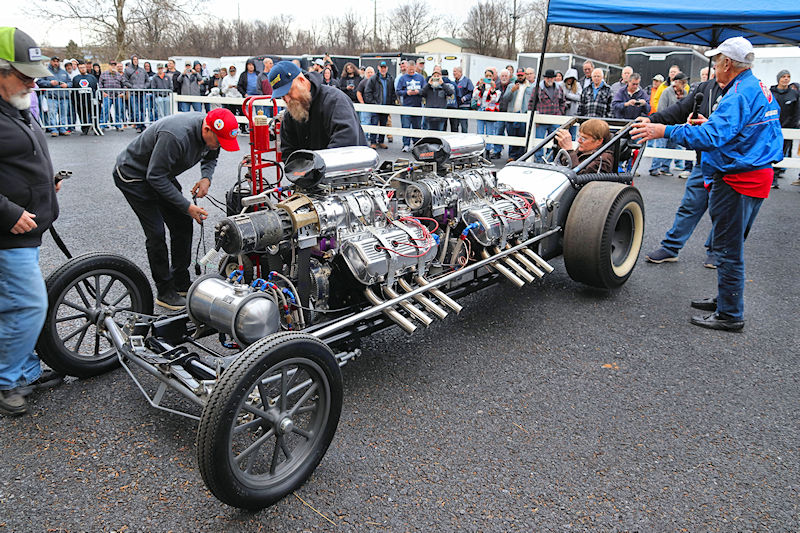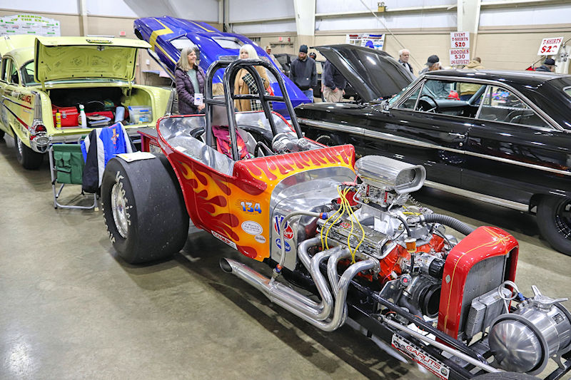I always go to the hall on the right as you enter first. There’s always some good drag cars there, most of which are still being raced. Rocky Pirrone was well-represented in this area, as several of his cars were there on display. Then you walk past some of the vendors to hit the hall on the right. Lots of current and former cars there as well, not to mention more vendors with wonderful products. Even a bit of land speed action in the corner! On to the next hall and more active drag cars along with some of the unique vintage racers. And just when you thought you saw it all…up the ramp and there were even more cars along with some mind-blowing customs to feast your eyes on. And to top it all off, the weather cooperated and a few of the cars were taken outside to be cackled. If you’ve never seen one of these old-school hot rods fired up, it’s a treat to watch. It’s really an eye (and ear) opening experience! So many of the cars here are still actively raced. You really need to get out there and see some in action when racing season returns. I could go on and on about so many cars there, but the best thing to do is actually go. Mark your calendars now, and when it rolls around next January, go to Dragfest. You won’t regret it.