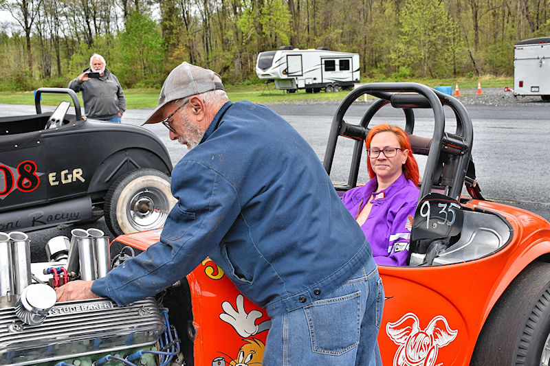 The South Mountain crew put in the hard work to get the track dried off and ready for the racers to get their cars sorted out after a winter of building, changing, and tweaking. One new car in the field was being changed, built, and tweaked right up to 1:30 on the previous day. Not only was the car new, there was a new driver making his debut behind the wheel. Keep checking dfmotormag.com for more on this new driver and his impressions of his first race!