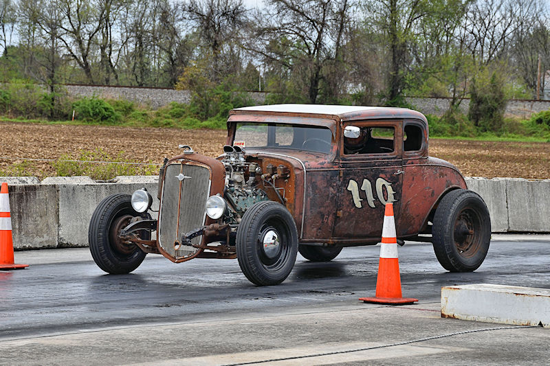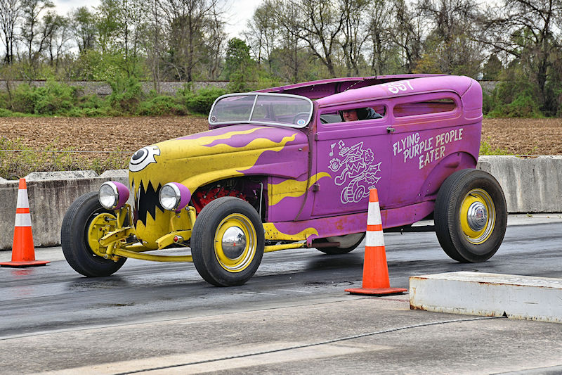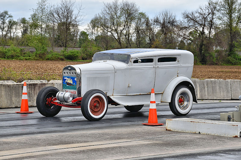 South Mountain Raceway – The sky poured out some liquid sunshine on this morning at South Mountain Raceway, but that gave way to a fresh, clean track for the opening race of the Vintage Eliminator season. You can see a lot of different kinds of racing on TV, and it’s all good, we love it all, but for many, the generic, corporate appearance of the top professional racing classes has become dull and boring. A quick glance down this pit row today won’t reveal any multi-million dollar hauling rigs or teams, no high-dollar corporate sponsorships, no bright TV lights or cameras. What you will see is what could possibly be the most interesting race series in drag racing anywhere. Not the fastest, not the flashiest bunch of race cars you’ll ever see, but you could chose just about any car in attendance and find more character in that one ride than you’d find in an entire field of a NASCAR or NHRA event. In fact, I’d be willing to bet you won’t find a race car at any sanctioned professional event that would be sporting bullet holes like you can find here. And not only do the cars have more character, if you talk to any of the drivers, you’ll get to talk to real people who act more like a big, happy family than competitors. And that character thing? They’re all so full of character, you might get some on you if you get too close. No carefully rehearsed corporate sponsor speeches from this bunch.